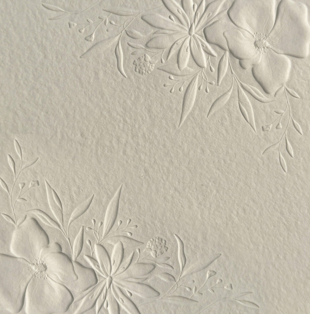 The effect in both cases is pure texture—your design rendered in shadow and dimension rather than color. It’s one of the quieter choices you can make with letterpress, and often one of the most elegant. A blind-embossed floral in the corner of an invitation, paired with a single deep ink color for the text, is the kind of detail that makes people look twice.